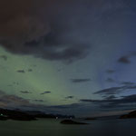 Um ein Uhr nachts schreckt Helga aus dem Schlaf. Eiskalte Hände haben sie an den Füßen gepackt. Obwohl völlig schlaftrunken ist ihr klar, wenn sie so geweckt wird, kann es nur eins bedeuten: Es gibt Polarlichter. Welch ein Glück für Heiko, dass er noch wach ist und vor dem Zubettgehen seinen üblichen Kontrollgang um Leo herum machen wollte. So hat er sie überhaupt bemerkt. Leider war es nur ein kurzes Schauspiel. Als Helga endlich draußen ist, schließlich ist es ein wenig zu kalt, um im Nachthemd vor die Tür zu gehen, ist es bereits vorbei und bald schließt sich auch die Wolkendecke wieder. Wie Heiko meint und wie es auch seine Fotos zeigen, war das Polarlicht auch lägst nicht so stark, wie wir es vor drei Jahren auf den Lofoten erlebt haben. Aber was nicht ist, kann ja noch werden.