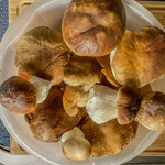 Jetzt ist hier nur wenig bis nichts los. Nur ein deutsches Wohnmobil hat außer uns hergefunden. Nette Leute, wie's scheint. Heiko leiht ihnen einen Schukostecker, damit sie Strom ziehen können. Zum Dank bekommen wir von Ihnen eine große Schüssel voller selbst gesammelter Stein- und Birkenpilze. Sie versichern uns, dass sie bereits am Tag vorher solche Pilze gegessen hätten und noch leben, nachdem wir erst ein wenig reserviert reagieren.