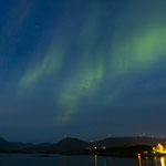 Der Himmel gestern war wolkenlos und die Wetter-App versprach auch eine solche Nacht. Wieder hoffen wir auf Nordlicht und suchen auf dem felsigen Ufer schon mal nach einem geeigneten Foto-Standort. Wenn möglich möchte der Fotograf ja einen passenden Hintergrund haben. Die gegenüber liegende Bergkette wäre schon nicht schlecht dafür. Gegen 20 Uhr platzieren wir uns und warten ab was kommen mag.