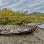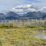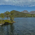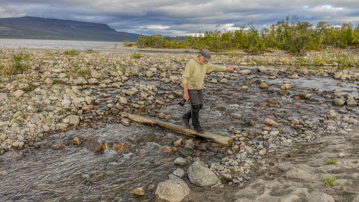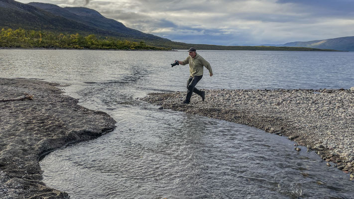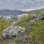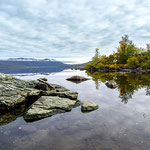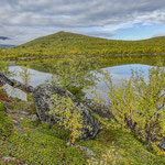 Von unserem Rastplatz aus führt ein Pfad hinunter zum See, den wir natürlich gleich erkunden. Die Wolkendecke ist ein wenig aufgerissen, aber ob das reicht, um Polarlichter sehen zu können, ist zu bezweifeln. Wie immer ... abwarten ...