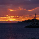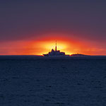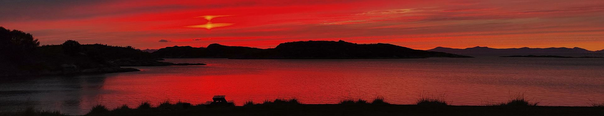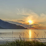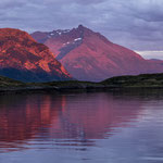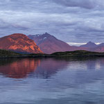 Und wenn es denn schon kein Nordlicht gibt, hält die Natur ein anderes Schauspiel bereit. Der Sonnenuntergang verwandelt die gegenüber liegenden Berge in ein rot glühendes Panorama. Wir haben schon mehrfach Alpenglühen hier erlebt, aber so stark noch nie. Es ist als wenn im Berginnern ein Licht entzündet wäre.