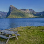 Gestern sind wir mit der Fähre von Brensholmen rüber auf die Insel Senja. Nach ca. 40 Minuten Fahrt war Anlegen in Botnhamn. Ein bisschen Senja- oder Lofotenluft schnuppern gegen Ende unserer Nord-Norwegen-Tour muss immer sein. Da kommen wir nicht drumherum, auch wenn wir uns ursprünglich vorgenommen hatten, diesmal Senja und auch Lofoten auszulassen. Aber das geht gar nicht. Diese Inseln sind einfach etwas ganz Besonderes. Und jetzt im September hat der Touristenstrom, der in den Sommermonaten herrscht und der nur noch nervig ist, nachgelassen.