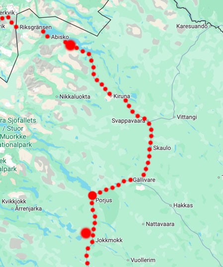 Da wir gestern Nacht vom Polarlicht so überrascht wurden, und die E10 noch so einige Parkplätze mit Fußpfaden zum Torneträsk bietet, entscheiden wir uns, noch in der Gegend zu bleiben. Vielleicht ist uns das Glück heute Nacht oder morgen ja noch einmal hold. Wir fahren einige Kilometer und laufen die verbleibenden Parkplätze an, um uns einen Überblick zu verschaffen, welche Ausblicke besonders geeignet sein könnten. Gar nicht so einfach, da man ja im Voraus nie weiß, von wo genau das Polarlicht kommt und wie die Wirkung sein wird. Erst einmal stellen wir uns wieder auf den Platz von gestern. Hier können wir überlegen, Essen kochen, Fotos bearbeiten, ausruhen und abwarten, wie das Wetter sich zum Abend hin entwickelt. Eigentlich sagt die Wetter-App Regen und Wolken voraus. Erst morgen soll es wieder einen wolkenfreien Himmel geben. Aber das ist ja nicht in Stein gemeißelt.